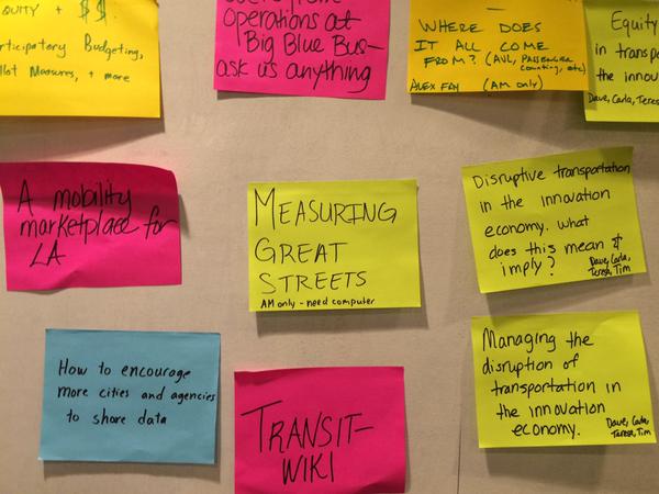 Check out all these cool panel ideas! Where should we go first? #TranspoCampLA pic.twitter.com/NfNp9Ffq0L