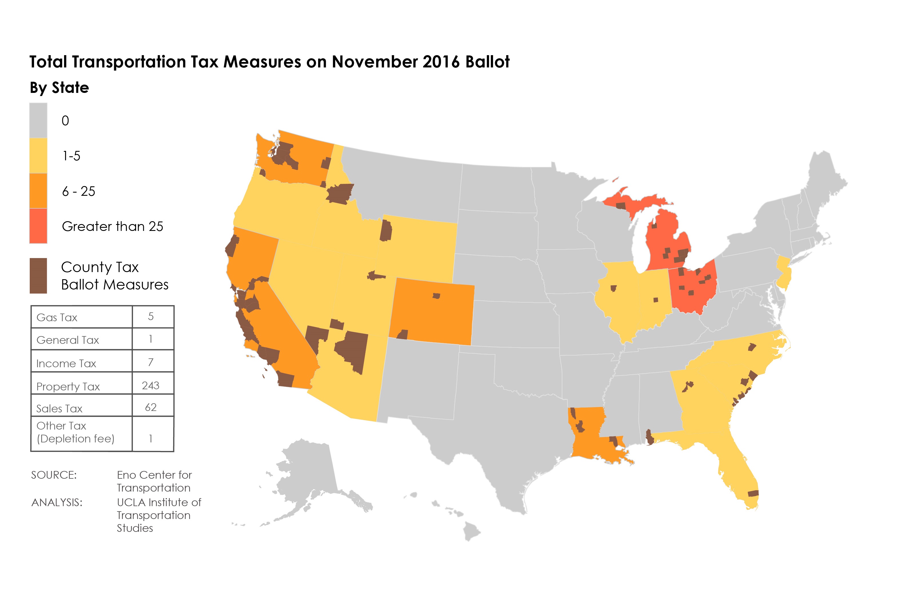- Property taxes are by far the dominant form of transportation ballot measure. State law in some places also dictates the type of finance mechanism. For example, the popularity of county-wide sales tax measures in California is partially due to laws limiting the uses of property tax revenues.