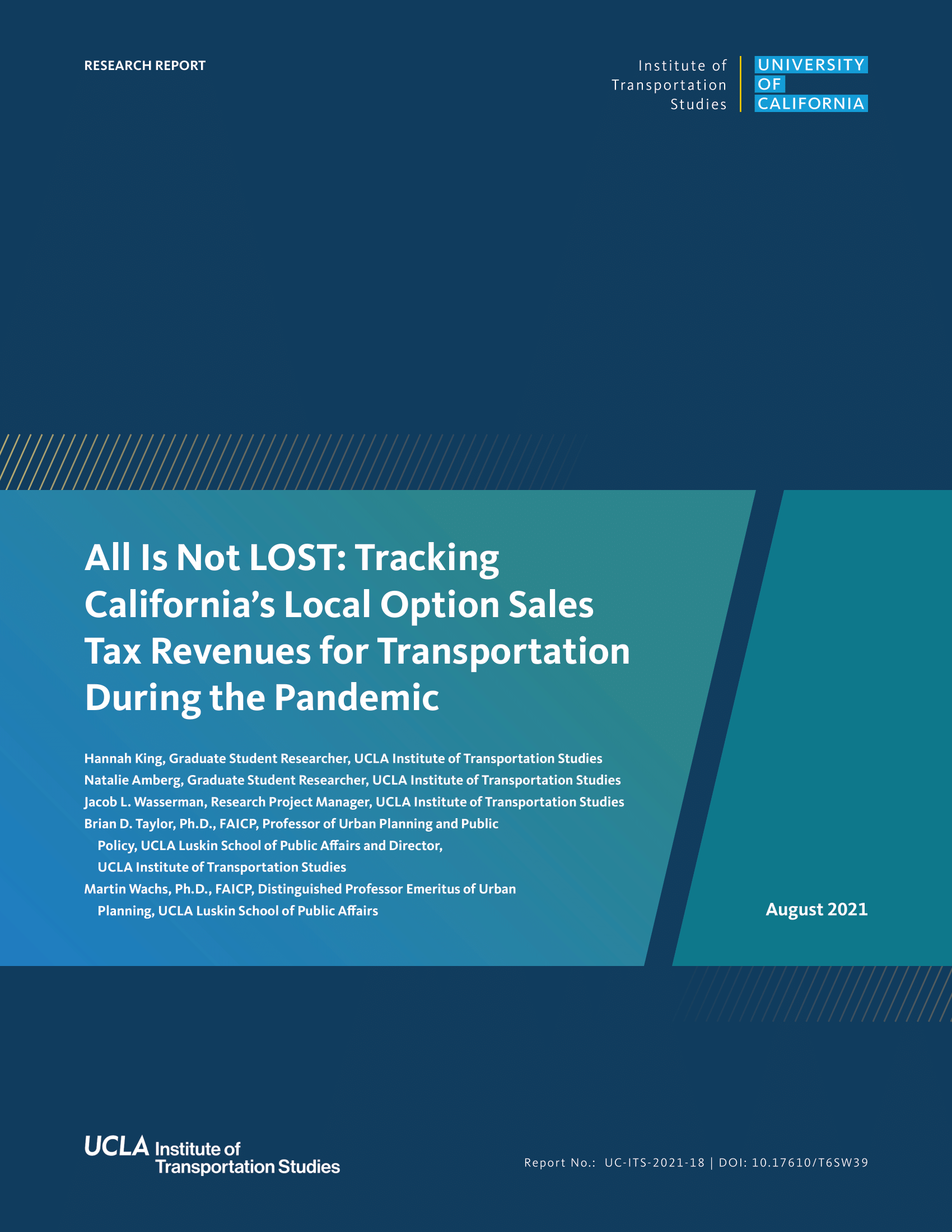 The COVID-19 pandemic dramatically affected transportation systems, including the ability of localities to pay for them. This project explores the effects of the pandemic and the associated economic turbulence on local option sales taxes (LOSTs), an increasingly common revenue source for transportation in California and across the U.S. LOSTs have many advantages over alternative finance instruments, and they can raise prodigious amounts of revenue. However, LOST funding relies on consumer spending. During times of economic weakness, spending and therefore LOST revenues will lag. This was precisely the pattern in California counties during the initial months of the pandemic. Fortunately for local transportation budgets, LOST revenues recovered after the initial economic shock of COVID-19, albeit at a lower level than they likely would have otherwise. LOST revenue trends during the pandemic were affected by national and regional economic conditions and government policy as well. This public health crisis illustrates both the pitfalls and resilience of LOSTs during economic downturns and recoveries. The lessons from the pandemic’s effects on LOSTs will be useful for policymakers and analysts in preparing for inevitable future economic fluctuations.