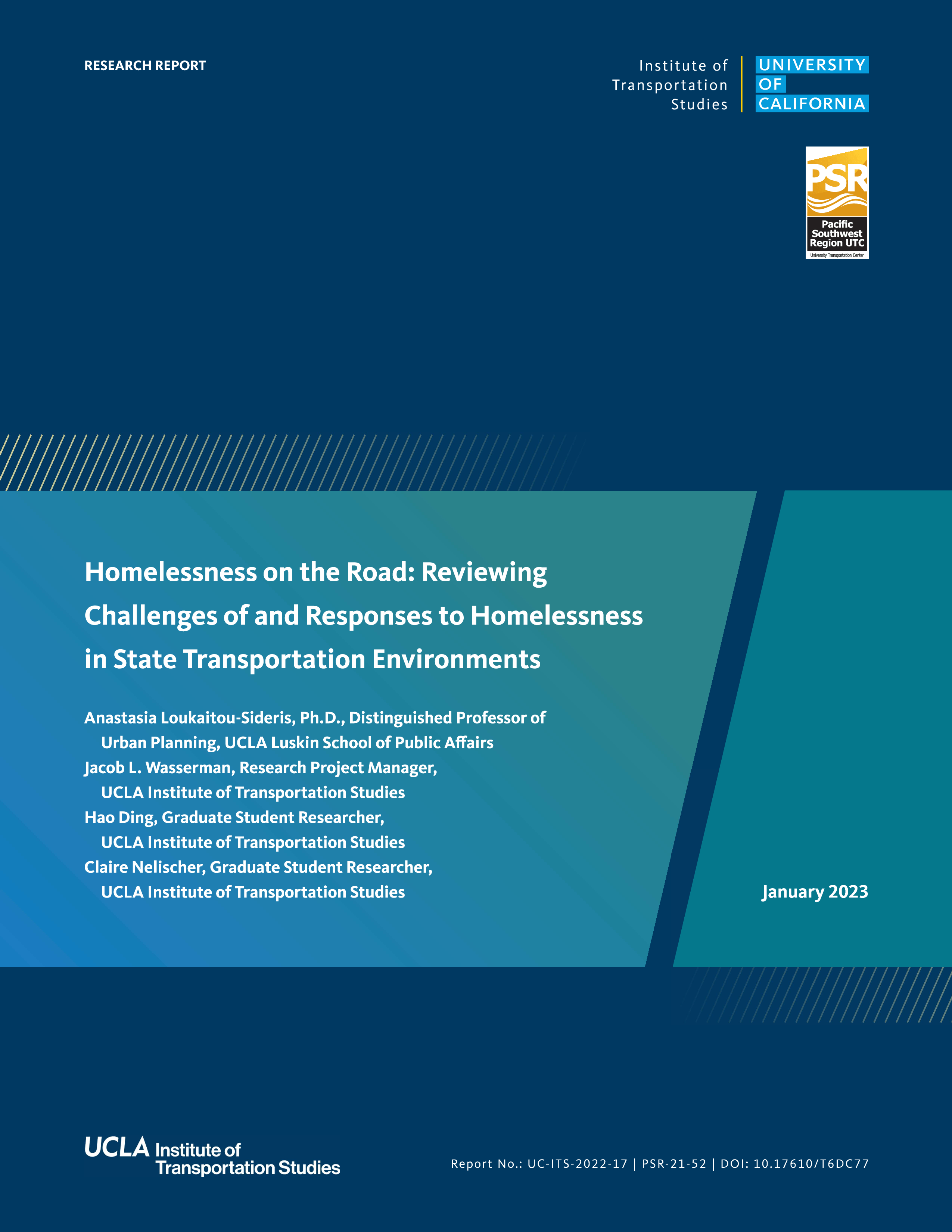 This project synthesizes existing literature and findings from interviews with staff from state DOTs, service providers, and organizations responding to homelessness. Homelessness represents a recognized and common challenge for DOTs, but the numbers and location of unhoused individuals in state transportation settings vary and fluctuate. As DOTs face jurisdictional, financial, and legal hurdles in responding, DOT staff employ both “push” and “pull” strategies, the most common of which is encampment removals. However, the effectiveness of such removals is limited. Other strategies include “defensive design” and, more proactively, establishing or partnering with low-barrier shelters, providing shelters and sanitation on DOT land, and coordinating rehousing and outreach efforts. The findings suggest that DOTs should acquire better data on homelessness on their lands, create a homelessness coordinating office, establish formal partnerships with nonprofits/service providers, and evaluate the necessity of encampment removals, through the development and utilization of prioritization criteria. DOTs should coordinate with other bodies as they work towards broader housing solutions.