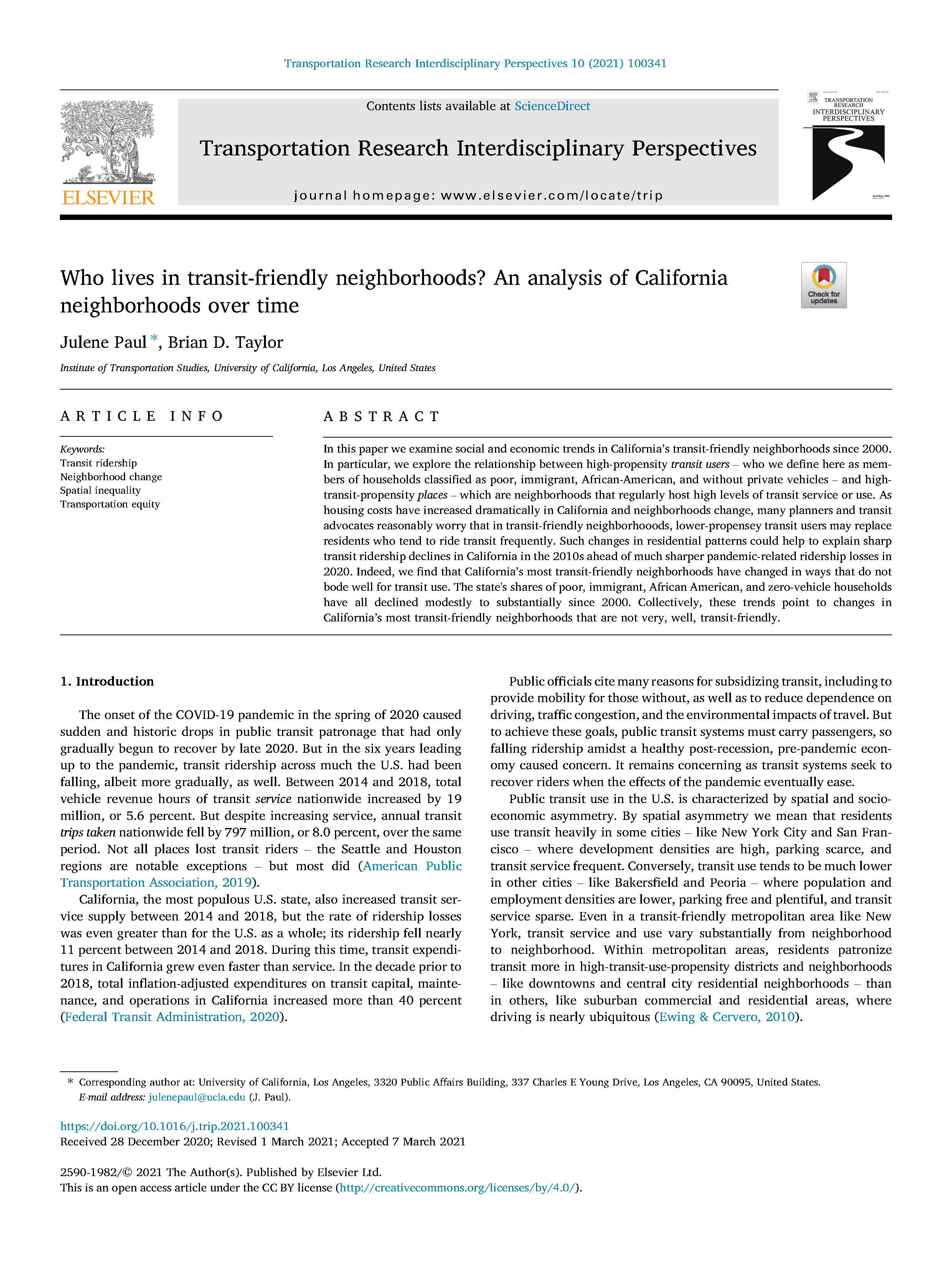 Brian D. Taylor (PI)