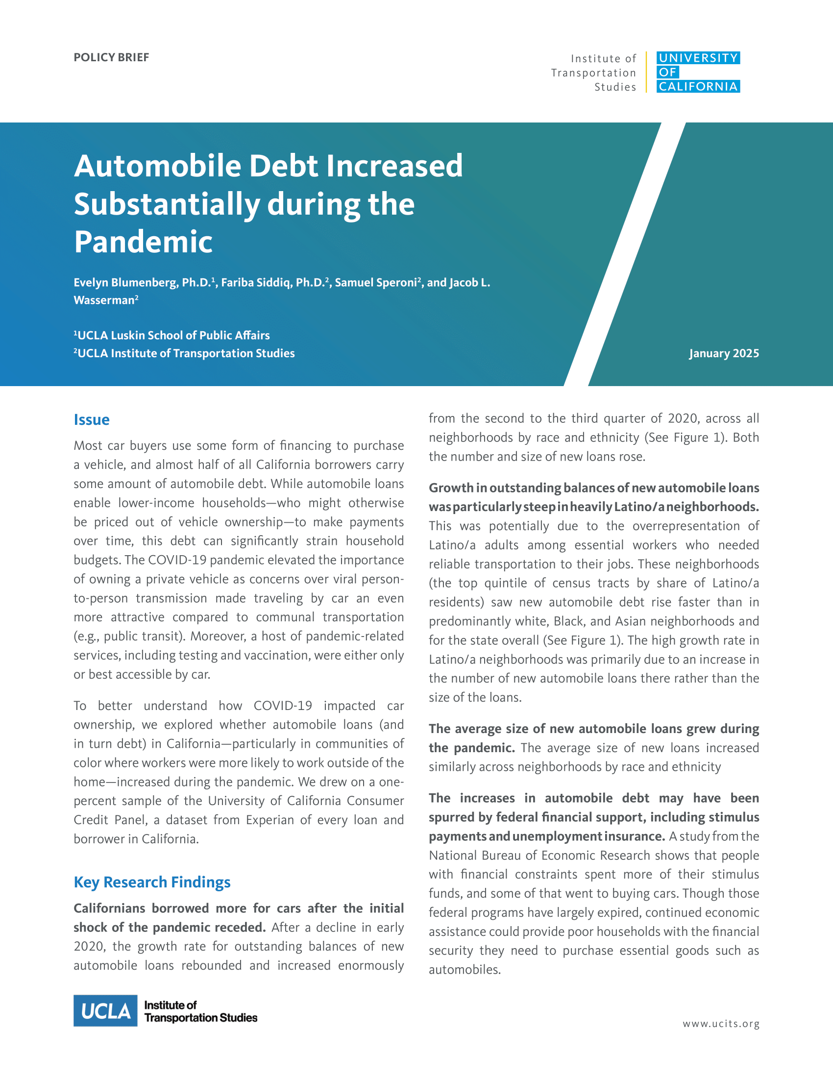 Most car buyers use some form of financing to purchase a vehicle, and almost half of all California borrowers carry some amount of automobile debt. While automobile loans enable lower-income households — who might otherwise be priced out of vehicle ownership — to make payments over time, this debt can significantly strain household budgets. The COVID-19 pandemic elevated the importance of owning a private vehicle as concerns over viral person-to-person transmission made traveling by car even more attractive compared to communal transportation (e.g., public transit). Moreover, a host of pandemic-related services, including testing and vaccination, were either only or best accessible by car.