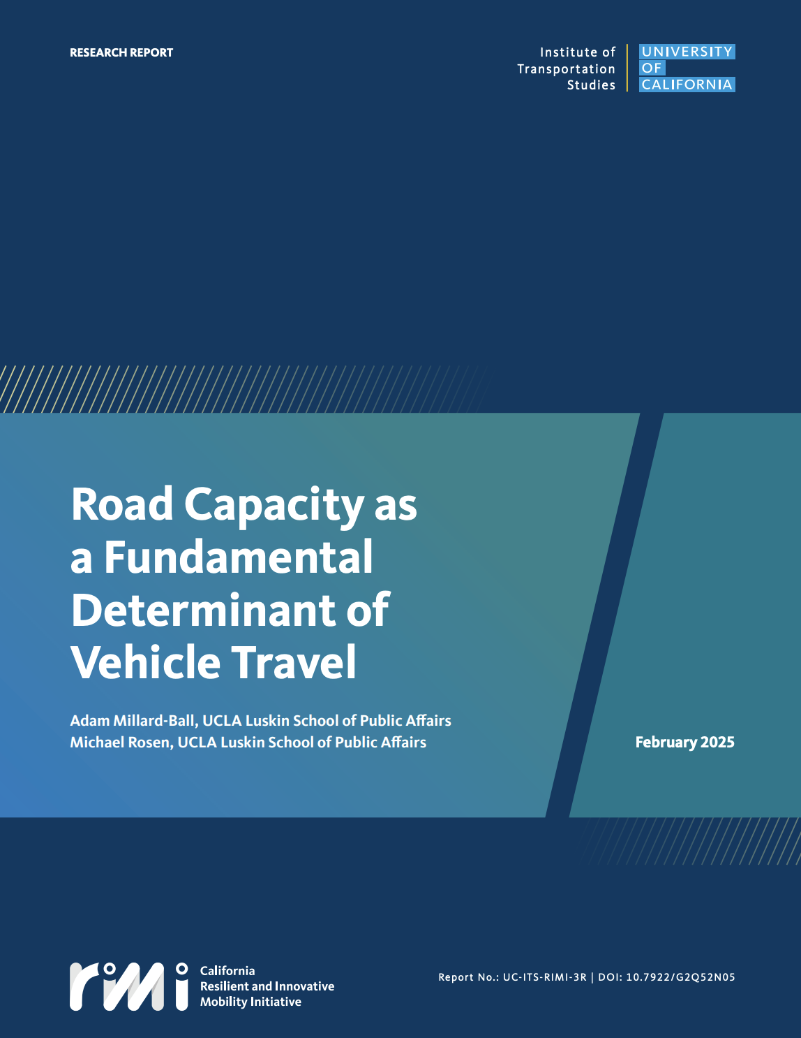 Reducing vehicle miles traveled (VMT) is a central plank of climate policy in California. VMT, however, has proved stubbornly resistant to policies to reduce it. While urban growth has become more compact and public transit service levels have been maintained or increased, these positive trends have not translated into less driving. This report argues that substantial reductions in vehicle travel in congested urban regions can only be achieved through reducing road capacity. It may be difficult to achieve substantial reductions in vehicle travel by relying solely on public transit, walking and cycling, and land use planning for compact, mixed-use development without an equal emphasis on limiting road capacity expansions, and even reducing current capacity.