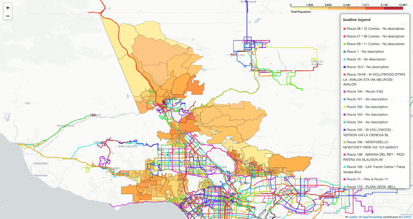 The strategies employed to physically evacuate residents from threatened areas can also produce disparities. Emergency response systems that rely on individuals using their private vehicles to evacuate may leave many vulnerable groups stranded in high-risk areas during critical evacuation periods (Bish, 2011). Households that depend on public transportation or government-arranged transit often experience delays in their evacuations . As shown in Figure 1, even in evacuation-mandated areas with high population densities, the number of public transit routes is significantly lower than in other areas of Los Angeles. (Goddard, 2024).