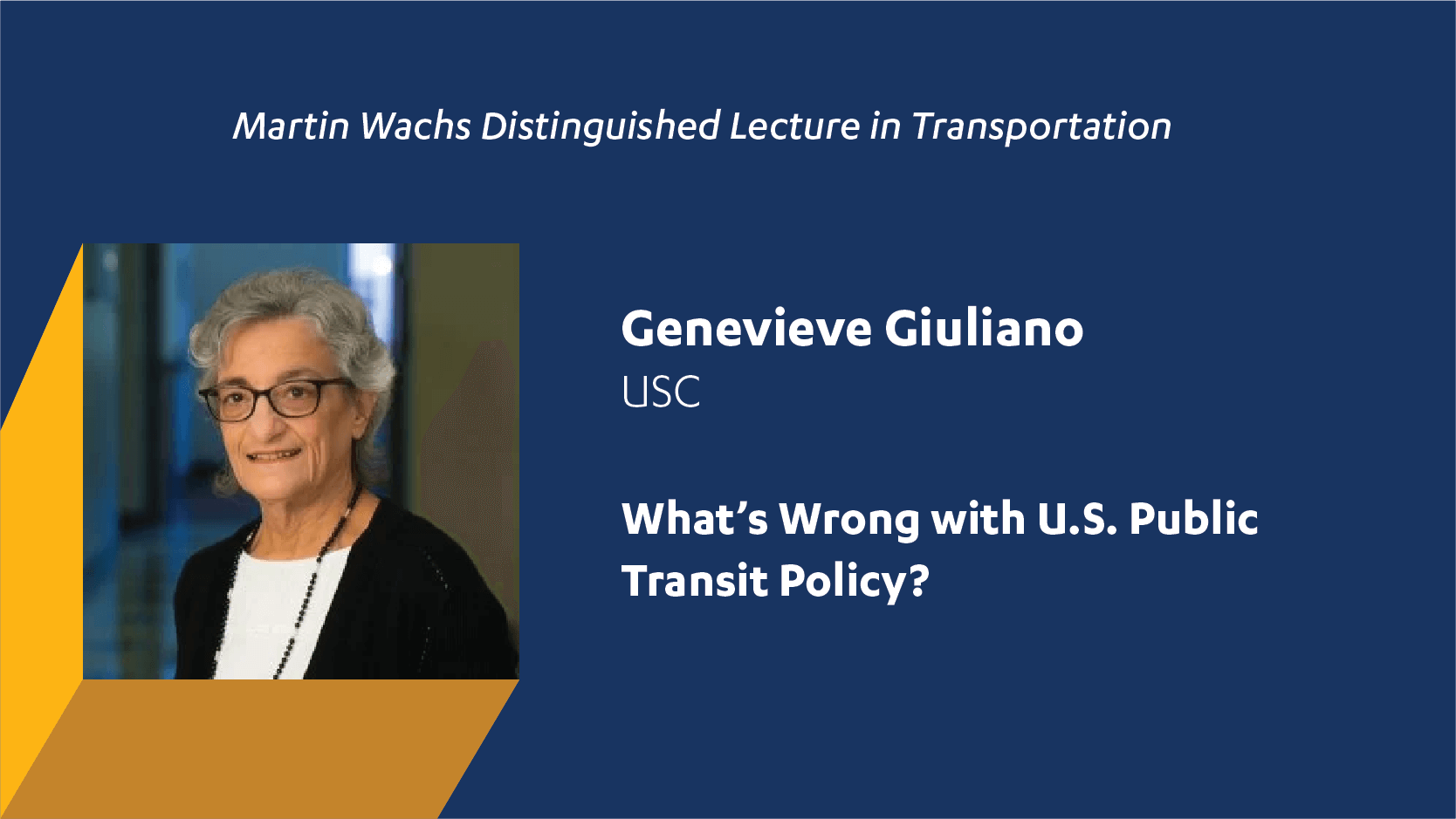 Berkeley hosted the 5th annual Martin Wachs Distinguished Lecture where Genevieve Giuliano, faculty at the University of Southern California, examined outcomes of four decades of transit policy. Using two examples, mobility for the disadvantaged and transit impacts on land use, Giuliano showed that little progress is being made in achieving transit’s objectives. Yet, as she demonstrated, public transit continues to receive strong public support, and subsidies continue to grow. Investment and service decisions have created major barriers to achieving public transit’s urban planning objectives.